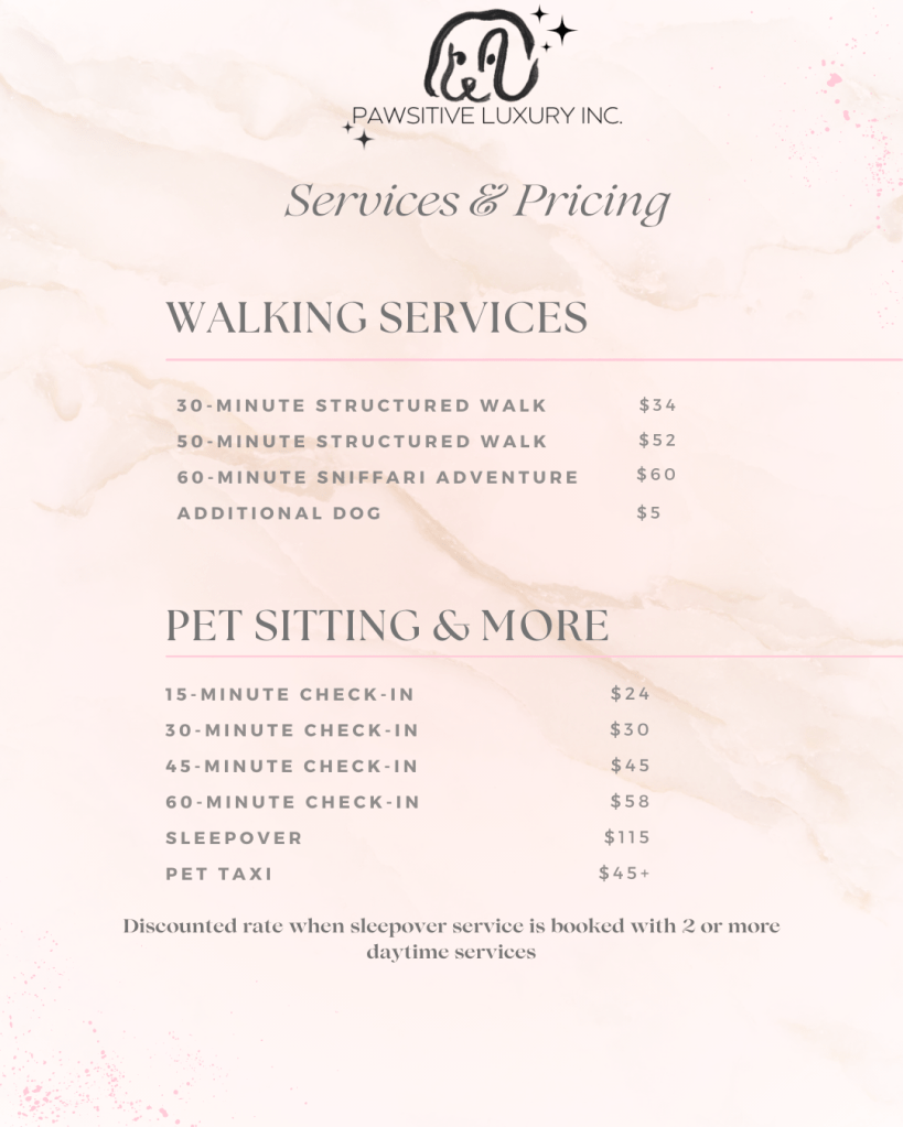 This is not your typical dog walking service! Here at Pawsitive Luxury, we focus on ensuring that your pup enjoys their walk, while teaching and reinforcing awesome leash manners. As dog walkers, we believe that it is necessary to utilize skills and proper techniques in order to avoid injuries, increased reactivity, and a poor mindset surrounding walks.